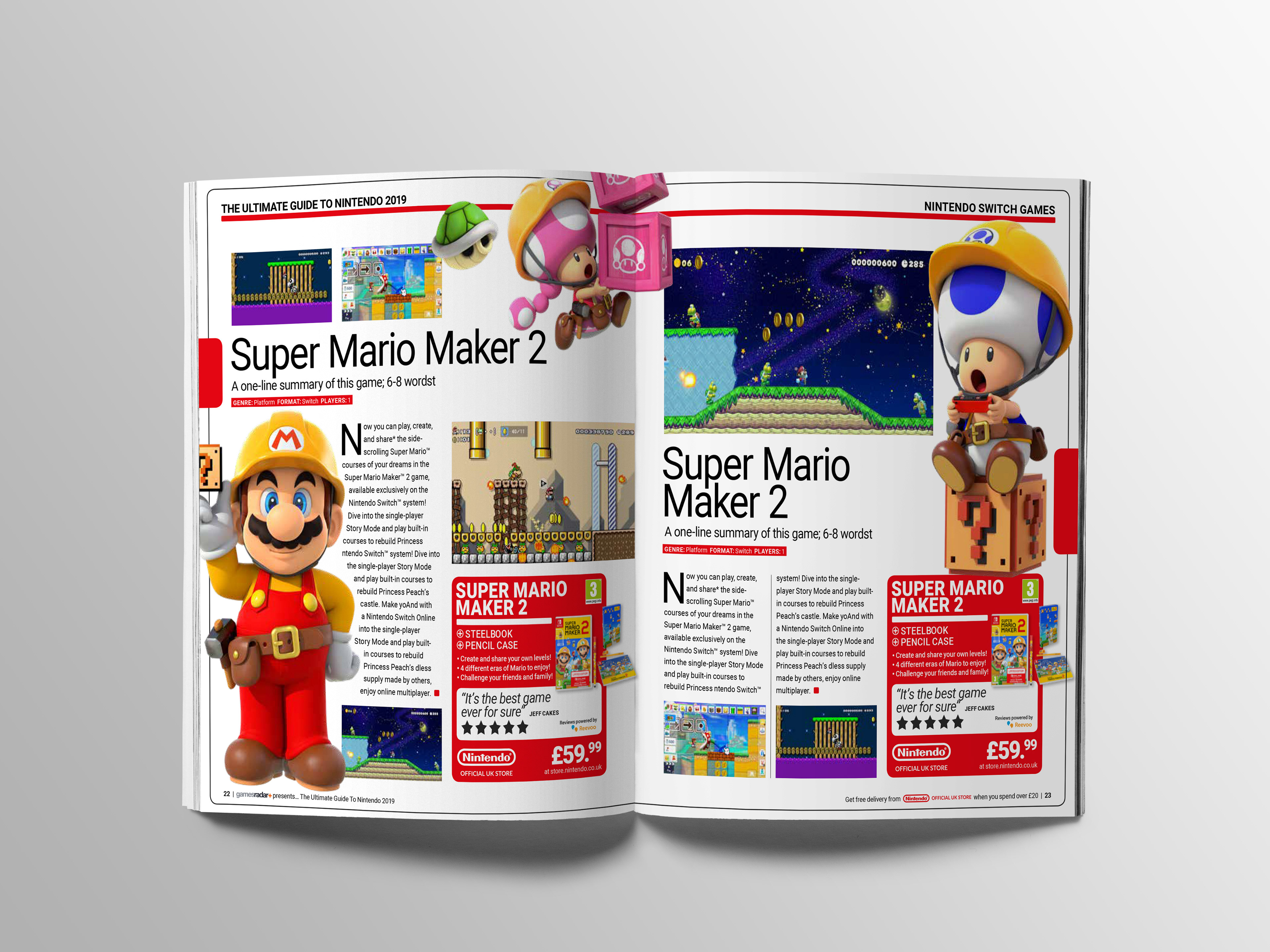 I was asked in the past year to create a catalogue to promote Nintendo products around Xmas time. Due to the negotiation process between Nintendo and the publisher I was unable to finish the project personally however the layouts and templates were used as a base for their team to add to and create the final catalogue.