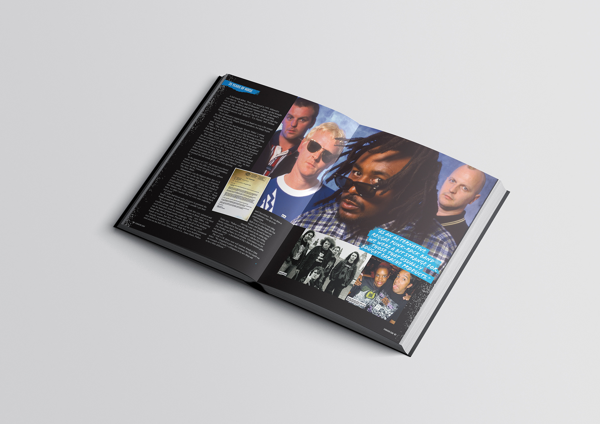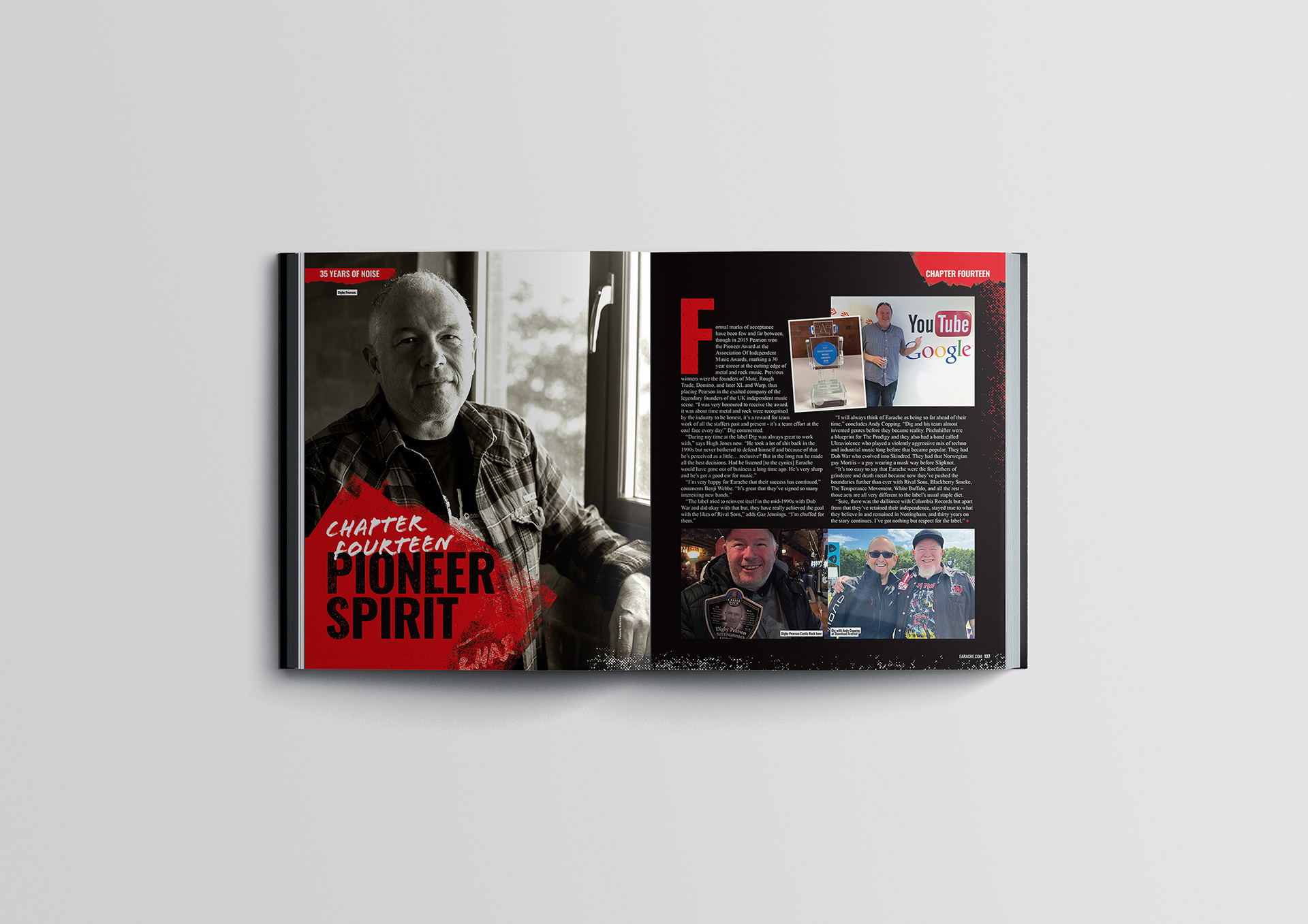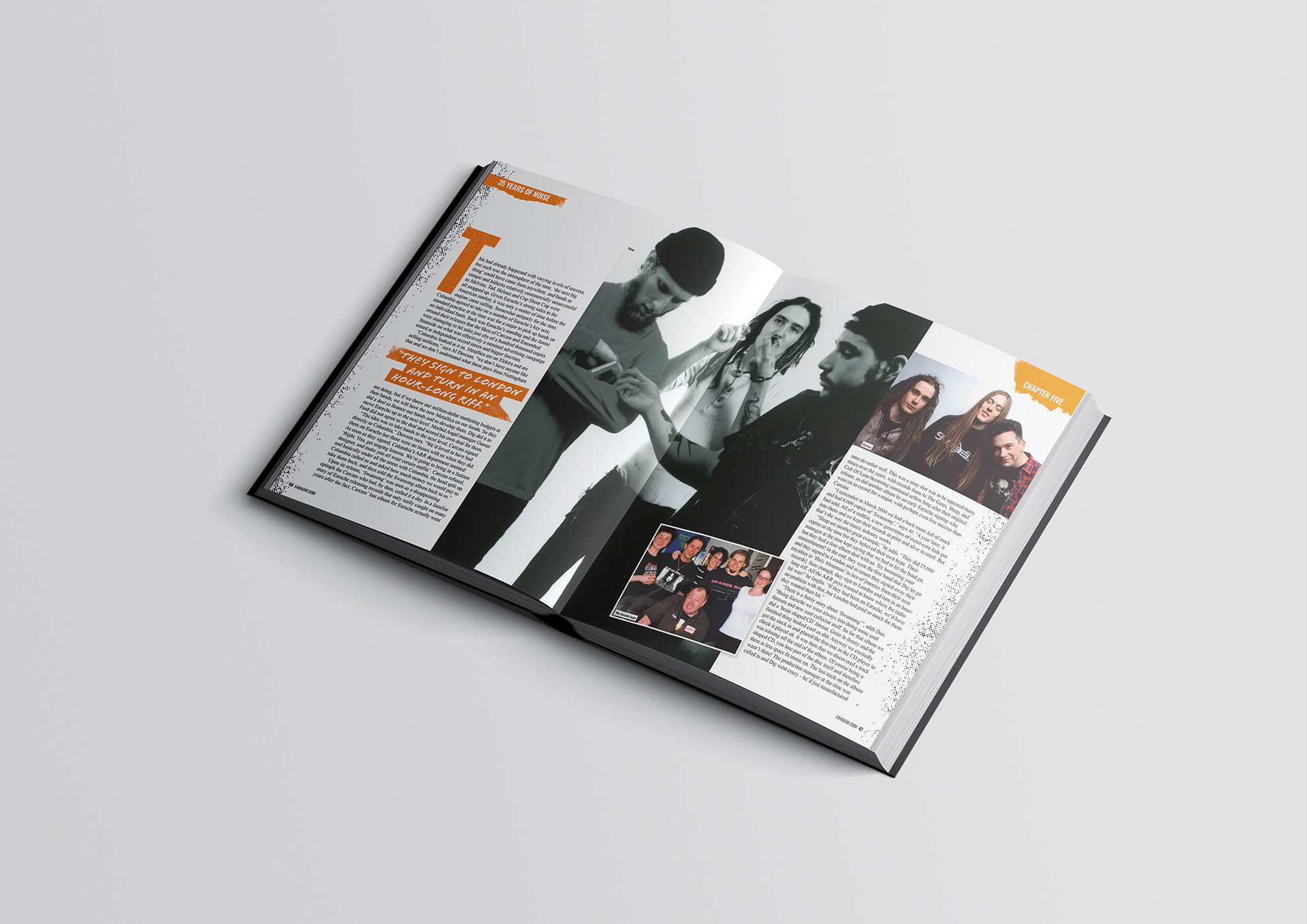 I created the full layout design for a 154-page book titled 35 Years of Noise, celebrating Earache Records' milestone of 35 years as a pioneering independent record label. The project captures the label’s rich history and its influential role in shaping extreme music genres. Through a mix of striking visuals and engaging content, the book offers a deep dive into the legacy of the label’s artists, releases, and cultural impact.
