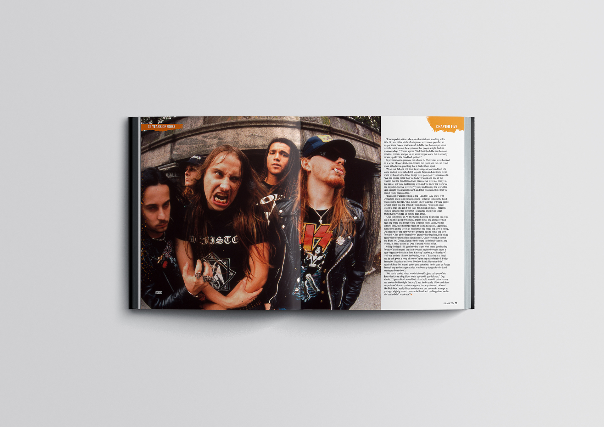 I created the full design for a 154-page book titled 35 Years of Noise, celebrating Earache Records' milestone of 35 years as a pioneering independent record label. The project captures the label’s rich history and its influential role in shaping extreme music genres. Through a mix of striking visuals and engaging content, the book offers a deep dive into the legacy of the label’s artists, releases, and cultural impact.